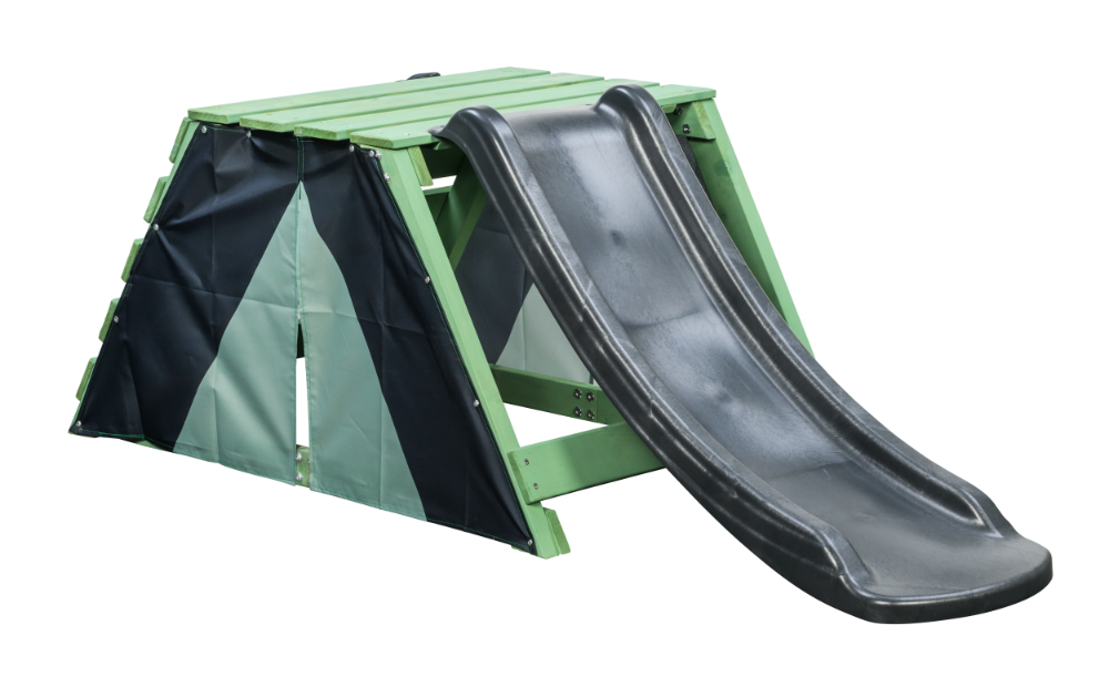 Het Houten speeltoestel Charlie small groen met 1.2m glijbaan grijs. Een leuk groen gekleurd compact klimtoestel voor de allerkleinsten (2 – 5 jaar) die houden van buiten spelen. Een veelzijdige speeltoestel met verschillende mogelijkheden om te glijden, te klimmen en je verstoppen achter het tentdoek. Sluit de doeken aan de zijkant voor je echte eigen hut! De Charlie is een speeltoestel van SwingKing.