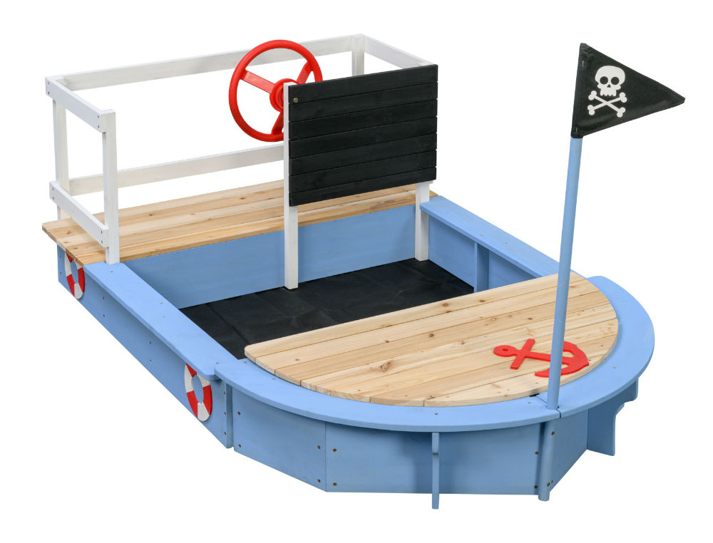 Deze zandbak is 172 x 112 x 60cm groot. De zandbak wordt met stuurwiel en piratenvlag geleverd. Je legt het meegeleverde doek op de bodem in het zandgedeelte van de zandbak. De zandbak wordt als bouwpakket geleverd en geschikt voor kinderen van 3 – 8 jaar.